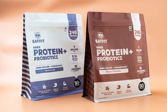 EatFit Whey Protein+ Probiotics is now available in 1 Kg and 35g sachets for on-the-go nutrition on Amazon & Flipkart.