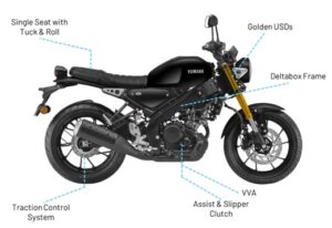 Built for agility and everyday exhilaration, the XSR155 features a lightweight, well-balanced chassis with 17-inch wheels for a confident, responsive stance. It is powered by a 155cc liquid-cooled, 4-valve engine with Variable Valve Actuation (VVA), delivering 13.5 kW and 14.2 Nm for strong acceleration across the rev range. Built on Yamaha’s proven Deltabox frame, it comes equipped with an aluminium swing arm, USD front forks, linked-type monocross rear suspension, and a 6-speed transmission with assist and slipper clutch — ensuring precise handling and superior ride feel. Dual-channel ABS and Traction Control further enhance safety and rider confidence.