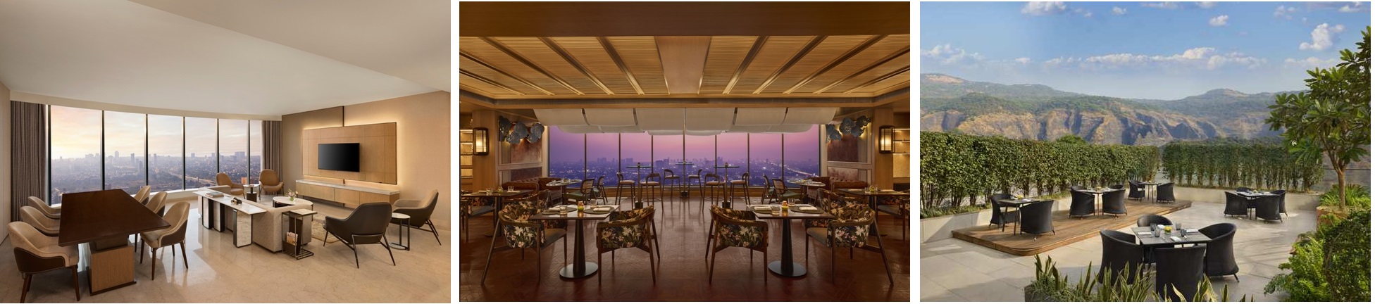 L-R: Presidential Suite living room, Mizuki restaurant and Hill View Cafe Al Fresco