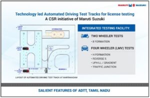 Mr. Rahul Bharti, Senior Executive Officer, Corporate Affairs, Maruti Suzuki, said,We are honoured to partner with the Government of Tamil Nadu to introduceAutomated Driving Test Tracks in the state. Automated driving license testing ensures a comprehensive,rigorous, transparent, and efficient assessment of a driver’s skill and knowledge. Only qualified and skilled applicants receive a driving license through this process. We believe that disciplined driving by these skilled drivers can contribute to safer roads.This initiative is a humble contribution by Maruti Suzuki to strengthen road safety in Tamil Nadu.”